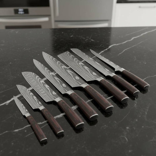 Set Profesional 8 Cuchillos Damasco e Madera™ - Serie Maestra